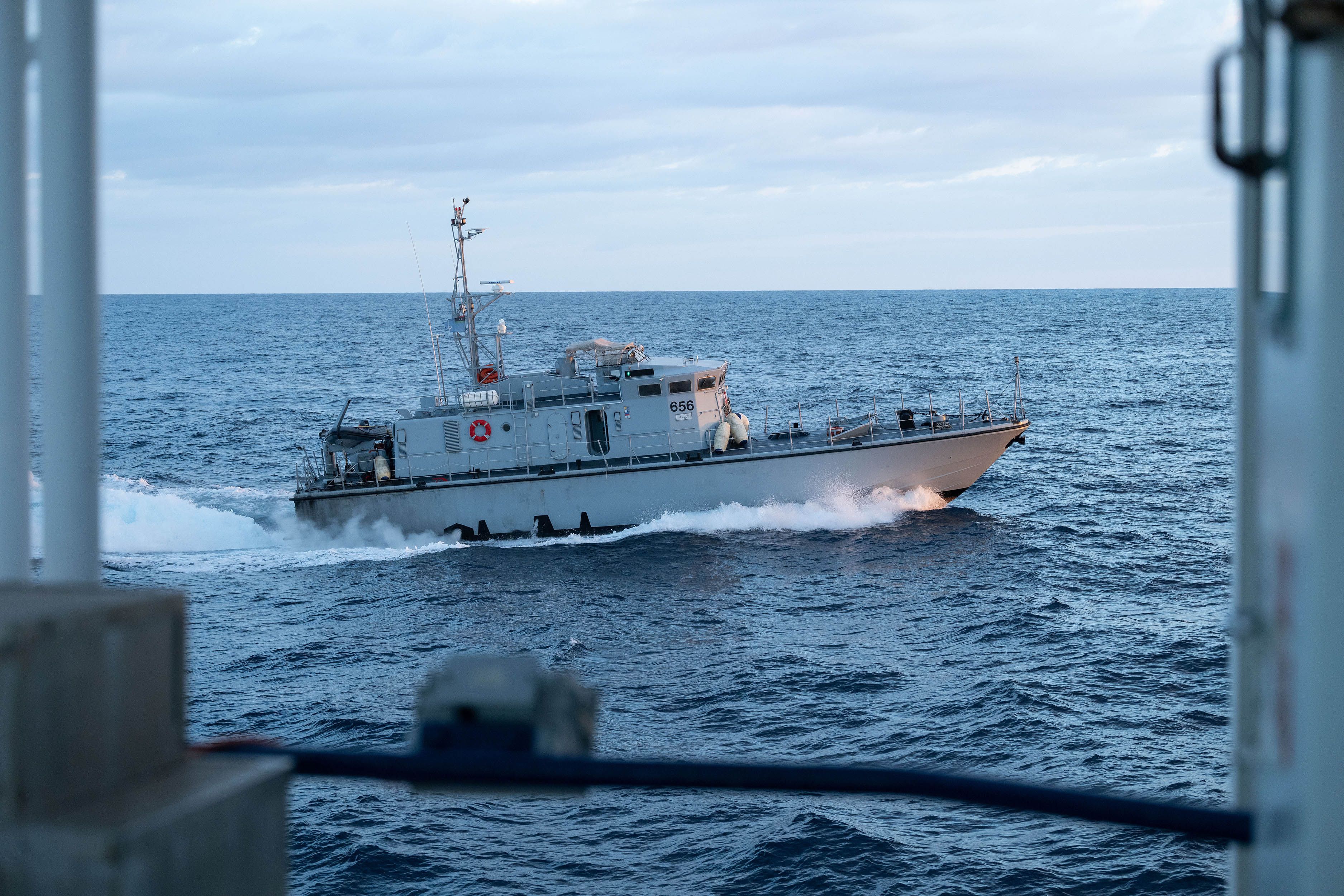 Summary: A so-called Libyan Coast Guard patrol boat set off at full